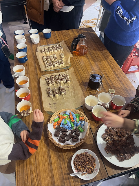 2月14日 バレンタインの日、卒業生の兄さんたちの差し入れチョコも加わり、いろんなチョコおやつを楽しみました!