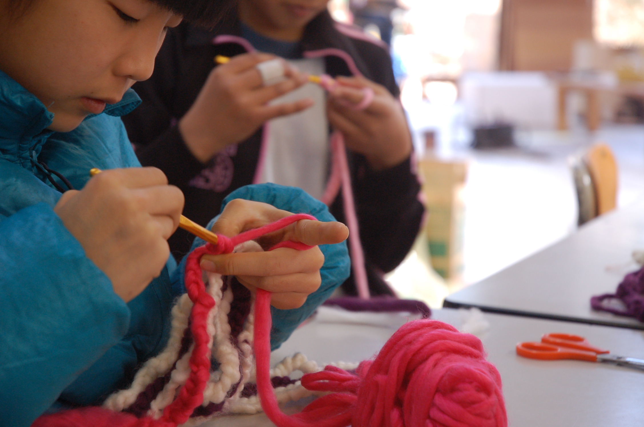 快晴の中、ホールや庭を使って、思い思いの創作活動が展開していきます。
