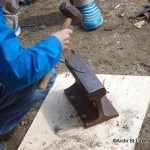- 釘を熱して、ナイフの形に叩き出しているところです。