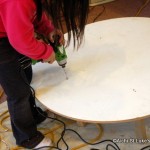 - 手作りの机にペンキで色を塗りました