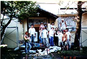 教区の青年有志が中心となり恒例になっている五條のワークキャンプ。当教会からは住吉恵美さんが参加しました。参加者一八名で教会のペンキを塗ったり、草刈りをしたりといい汗を流しました。主日には橋本・笠田・五條の合同礼拝を行いました。