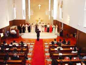 教会のクワイアのいいところは、老若男女、いろいろな人たちと一緒に音楽が楽しめるところです。中学生から八十歳まで、仲良くやっています。