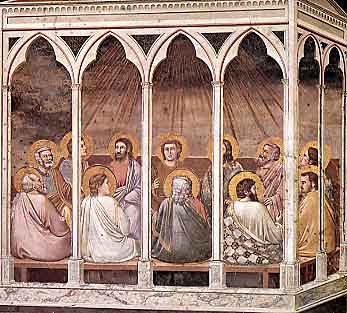 五旬節の聖霊降臨を描いた絵画には聖霊を炎で表したものと光線で表したものとがあります。たとえばエル・グレコは炎を描き、上に掲げたジオットでは光線になっています。ジオットは現象としての炎よりむしろその奥にある真相として聖霊の注ぎを描いたと言えるでしょう。