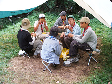 去年から引き続いてのテーマ「始まりのゴール」。水汲み・暗記等八つのポイントを廻るポイントハイク等、予想通りかなりハードなキャンプを堪能しました。二泊三日間フルに動き続けたキャンプと言えました。二泊目にはこの9月からボーイ隊に上進してくるカブスカウトたちを迎え、先輩としての姿を見せられたつもりです。