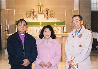 去る10月29日(土)ミャンマー聖公会ミチナ教区の主教デイヴィッド・タン・ルイン師とご夫人が当教会を訪問されました。米国ユタ教区を訪れ、帰路、20年来の友人である大岡義明司祭を訪ねて京都に来られました。「新しい礼拝堂をお見せしたい」とのことで、大岡先生が聖マリアの新聖堂まで案内されて来られました。短い時間でしたがいろいろとお話を伺いました。ミャンマーには約七万人の聖公会の信徒がいて、ミチナ教区にも19の教会と7000人の信徒がいるとのこと。(日本聖公会の現在受聖餐者は約2万人、京都教区は2000人弱です。)一番多いのはバプテスト、次がカトリックで、聖公会は三番目だそうです。国全体としては「仏教国」と見なされていますが、北部ではキリスト教も多いとのこと。ミャンマーは軍事政権下で、外国との交流が大変難しいこと。是非日本の人々、特に若い聖職や信徒がミャンマーの教会を訪れて欲しい、と言って居られました。ミチナ教区は山岳地域で、自動車の入れない地域も多く、主教巡回も、幾日も掛けて、徒歩や、時には象に乗って行うのだそうです。穏やかな語り口の主教さんでしたが、深い苦悩と宣教への熱い思いを秘めてらっしゃるように感じました。