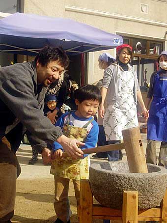 1月13日(土)、昨年の雨とは打って変わっての晴天に恵まれ朝8時半から保護者の方々が集まって下さいました。恒例の「お餅つき」今年度は、母の会の活動の中で、幹事さんの発案で、みんなが作り上げる保護者会また、幼稚園への協力体制を確実なものとする「一人一役」の形を取って下さいました。「お餅つき」もその一つで、担当の方々と12月に最初の打ち合わせをしました。幼稚園側から過去に行ってきた内容について話し、お母さん側での記録をお願いしました。しっかり「次年度に繋ぐ」事を認識して下さっている事を嬉しく思いました。お餅つきに関する段取り・人数把握・お餅の種類・お雑煮・焼き芋等々。総括する方とそれぞれが担う部分が分担され前日の準備と当日を迎えました。父母兄弟姉妹等総勢160名・餅米30s・各1升の小臼で21臼・お餅の種類は、餡・きな粉・磯辺そして、雑煮は「すまし雑煮」と京都らしく「白味噌雑煮」、何と嬉しやそれは京都の料亭仕込み=本物の味=台所があっ?と驚くプロの調理場になっていました。そして鳴門金時の焼き芋に加え「おぜんざい」も出来上がりました。更に五種類の伸し餅(ピーナッツ、山椒と七味・干しえびと青のり・バジル・ゆかり)もあり、16日(火)に保護者の手を借り、また子供達も先生と一緒に包丁を持って、出来立てのお餅の柔らかさからの変化を切る事によって体験、みんなで味わっていただく為におみやげにしました。臼と杵、まして割り木でのせいろ蒸しなんて子供達は見たことがありません。保護者の方の中にも「白蒸し」「臼取り」「おき(燠=熾き)」「檜皮=ひわだ」など、生活の中で聞き慣れないことばにも触れて頂きながら時間はスムーズに流れました。保護者の協力無しではとても出来得ません。子供達にも、保護者にも、とてもよい経験だと思います。特に今年は送り迎えの態勢が変わり(駐禁により自動車送迎か否かでお迎えの場が異なりました)久々に一堂に会してわいわいがやがやと楽しい関わりが見られました。考えながら段取りを立てていかなければならない事がいっぱいあります。何でも、簡単に出来上がる社会にいる今の私達だからこそ、残して行きたい「日本」を大切にできたらと思います。久保田さんの細かい配慮に感謝すると共に、卒園生からまた在園生の方々から品々やお力のお助けを頂き皆々様に本当に感謝です。みんなで作り上げた「お餅つき」 本当に美味しかった!!