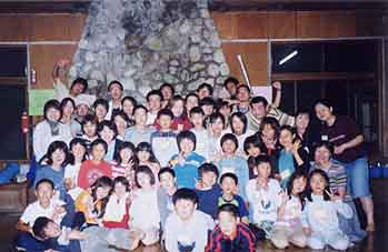2003年教区小学生キャンプ(北小松)の集合写真。