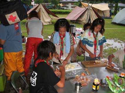 また、韓国スカウト二名が二四団とともに活動しみんな仲良くいい思い出ができたと思います。他地区、他団のスカウトと住所交換し,手紙を送ったりと交流ができました。仲良くなったスカウトとまたどこかで再会できるように今後もスカウト活動を続けてくれればと思います。