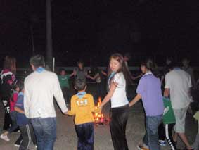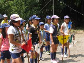 今年は小学校が夏休みに入る前のキャンプにもかかわらず35名(幼稚園児含む)の子どもが参加。大人も部分参加を含め40名、総勢75名でキャンプをする事が出来ました。それも前日までの雨が嘘のように見事な快晴の中(非っ常〜に暑かったですけど。)でのキャンプ。全体的に時間は押し気味でしたが、用意したプログラムが全て出来た事、本当に感謝です。