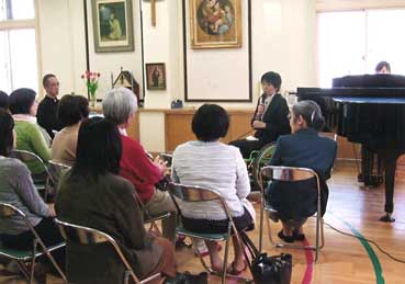 4月17日に婦人会主催で青野浩美さんのトーク&コンサートが催されました。青野さんは音楽大学声楽科在学中に筋疾患を発症され、その後気管切開を余儀なくされましたが、ご本人の努力で今も器具を装着しながらも音楽活動を続けておられます。一同その歌声にで聞き惚れました。