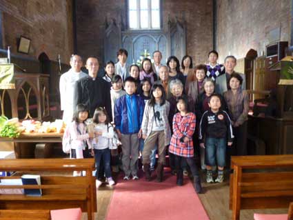 この日はこども祝福式で、マリア教会のこども達も参加させていただきました。また、収穫感謝の祈りもあり、献げられた果物等は家のない人を支援されています三光塾(ボランティアグループ)へ奉げておられます。説教では藤原司祭が今日のこども祝福式に因み、お話されました。内田司祭とは東京用賀にあります神学校時代の先輩、後輩の間柄とのこと。お昼の食事ではカレーライス、サラダ、ケーキ付の接待を受け、信徒様と交流のひと時を持たせていただきました。内田司祭、奥様、信徒様ありがとうございました。