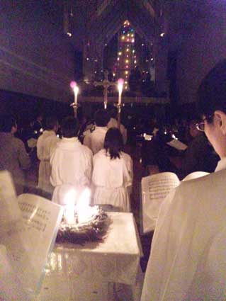 祭壇奉仕者、聖書朗読者、聖歌隊が集まり、最後のリハーサルをしました。ろうそく礼拝を素晴らしいものにしようと、みんな二時間ぶっ通しで練習しました。