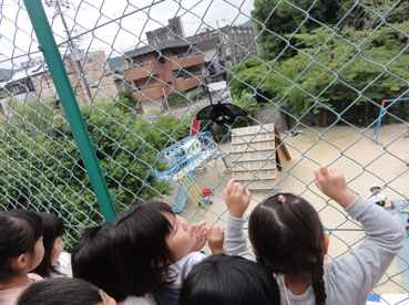ここ聖マリア幼稚園で働くようになってから、四か月が経ちます。それはそれは幸せな日々です。七月、たくさんの恵みの雨が降り、幼稚園を囲う木々もぐんぐんと枝を広げ、葉を茂らせています。時おり吹く風が運ぶサラサラサラという葉の音は、心も身体も静かにさせてくれるような気がします。そのなかで、ふと身をかがめて耳を澄ましてみると、小さな生き物たちの命の音がトクトクトクと聞こえてきそうです。