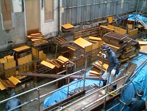 ○6月4日(金)夕、会館二階において、建築実行委員会、ヴォーリズ建築事務所、コーナン建設による総合定例会議が行われました。当日までの工事の進捗状況について報告され、今後の工程について説明を聞きました。