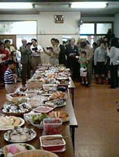 礼拝後には恒例の祝会。婦人会をはじめ、信徒の方々のすばらしい料理に舌鼓。南寛兄の名司会により、各セクションの活動報告、楽しいゲームをして過ごしました。