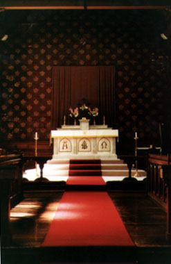 St Mary's Church was built of brick and had a solemn atmosphere.