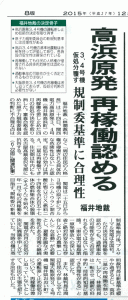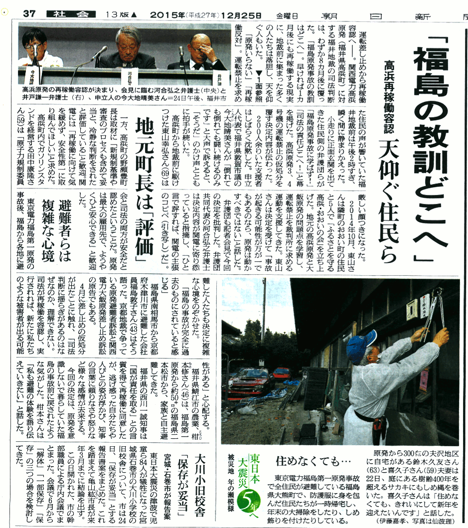 (Based on an article from the January 17th, 2016 edition of the Fukushima Minpo newspaper)