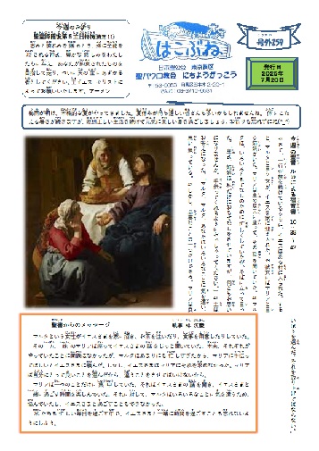 2025年7月20日(日)に日曜学校新聞号外259号が発行されました 。