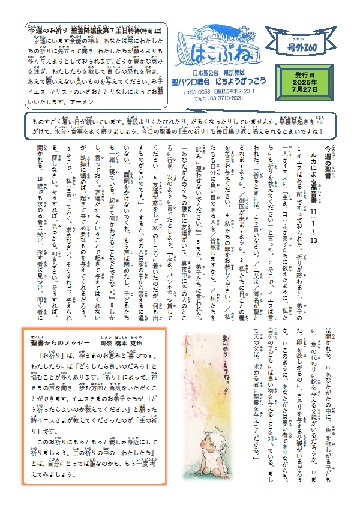 2025年7月27日(日)に日曜学校新聞号外260号が発行されました 。