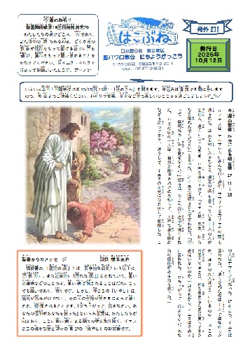 2025年10月12日(日)に日曜学校新聞号外271号が発行されました 。