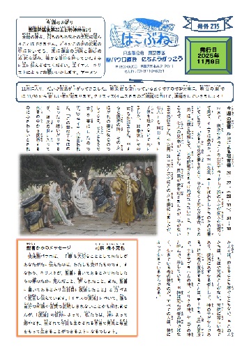 2025年11月9日(日)に日曜学校新聞号外275号が発行されました 。