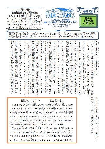 2025年11月16日(日)に日曜学校新聞号外276号が発行されました 。