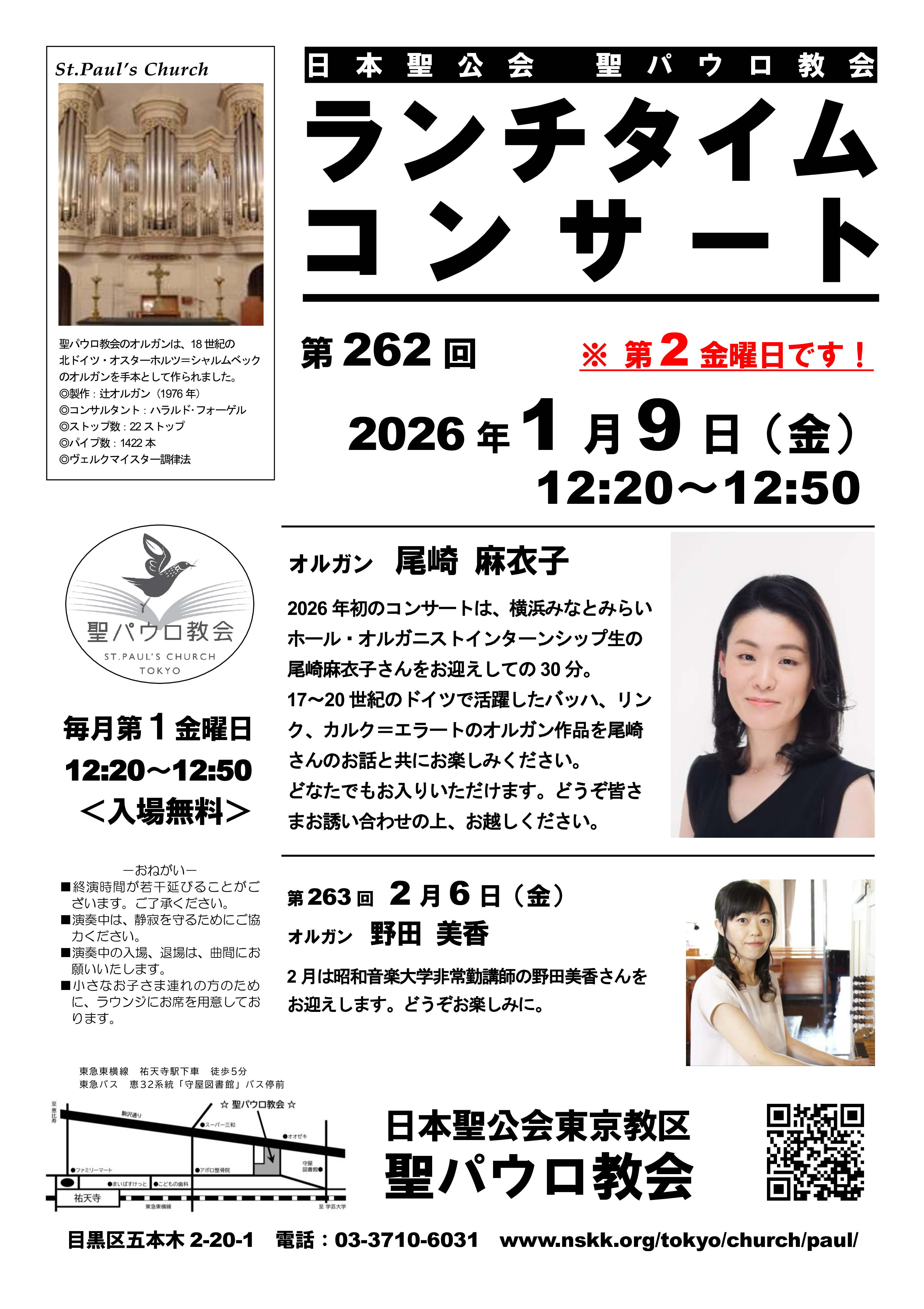 NEW!! 次回のランチタイムコンサートは 2月6日(金)12:20~ です。