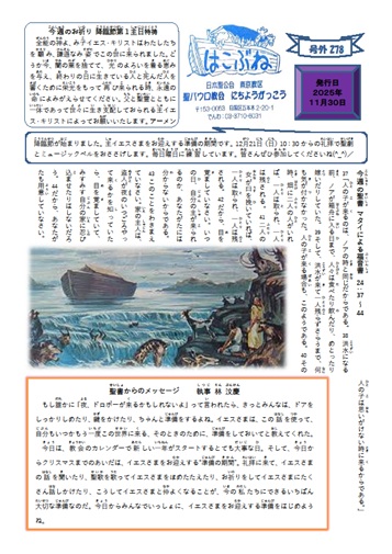 NEW!! 日曜学校新聞はこぶね号外278号が11月30日(日)発行されました。