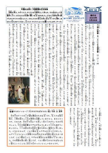 2023年4月2日(日)に日曜学校新聞号外141号が発行されました。