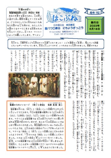 2023年7月2日(日)に日曜学校新聞号外154号が発行されました。