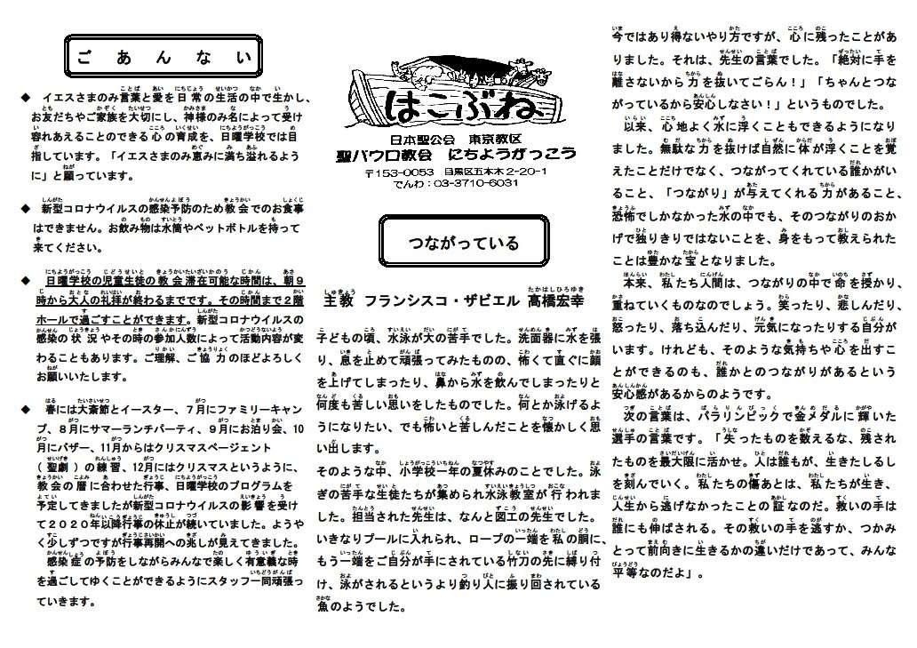 2017年7月16日(日)に日曜学校新聞「はこぶね」が発行されました。