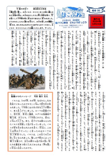 2024年3月24日(日)に日曜学校新聞号外191号が発行されました。
