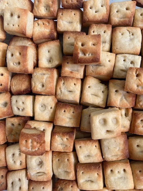 こちらは、おやつ。キューブ形の手作りクッキーです。粗塩をかけて、甘さと塩っぱさのバランスが GOOD!