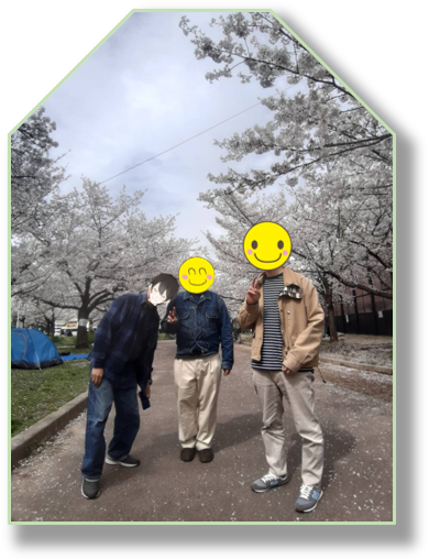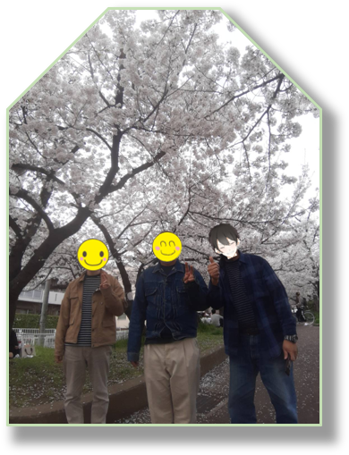 うちに通う利用者、10名以上の方と一緒に桜🌸を観ました。にぎやかだったぁ!