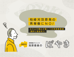 浅原和裕さんは福島市内に住んでいて、放射線線量計(モニタリングポスト)を目にしながら日常を送っています。 今回のぼやきは、東京電力柏崎刈羽原発6号機の再稼働をめぐってのぼやきです。新潟県の花角知事は、安全対策の実施など7項目について国の対応が確認できれば再稼働を了承すると発表しました。再稼働すれば福島第一原発の事故以来、東京電力としては初めてのことになります。