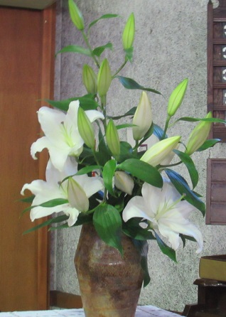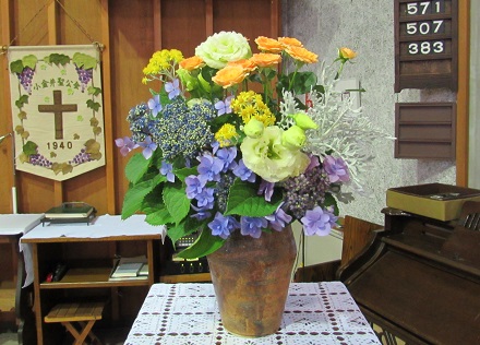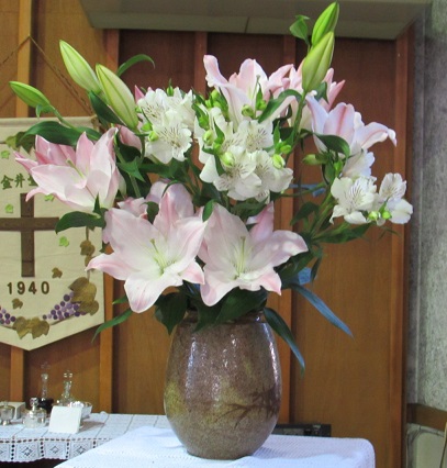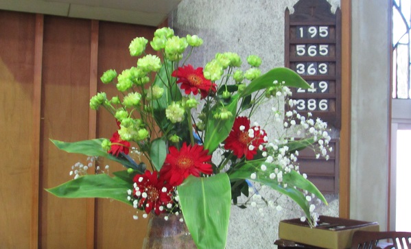長崎聖三一教会礼拝堂の献花です(7月29日)