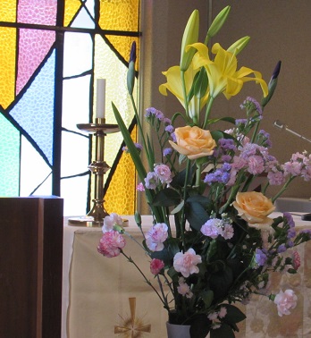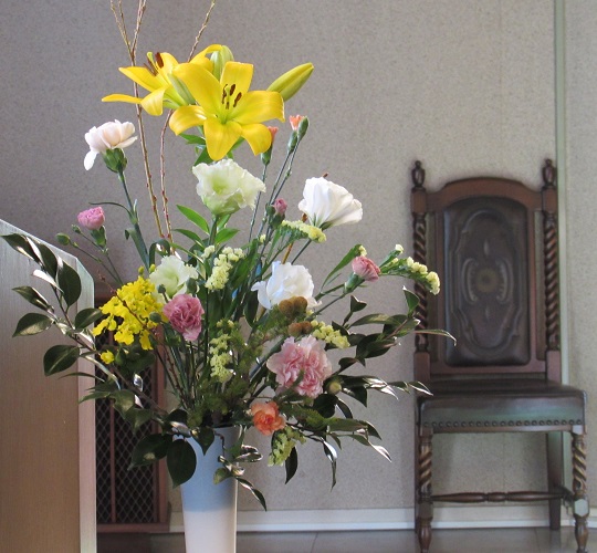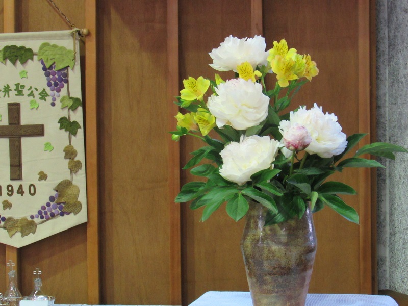 長崎聖三一教会礼拝堂の献花(5月19日)