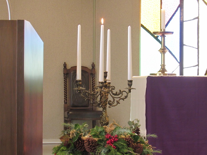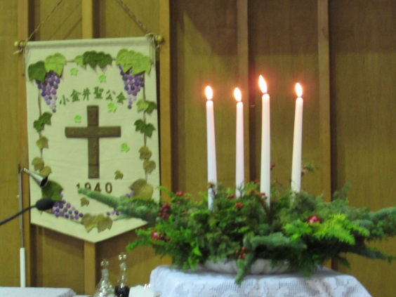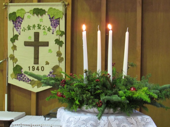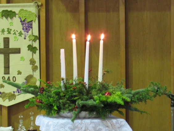長崎聖三一教会の礼拝堂のアドベントキャンドル(12月2日)