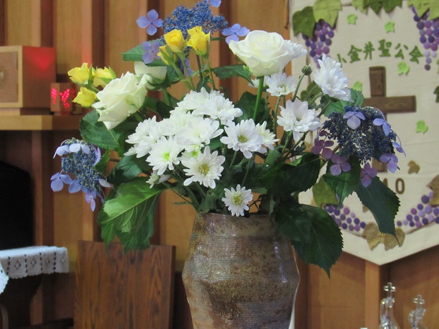 長崎聖三一教会の礼拝堂の献花(10月21日)