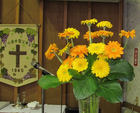長崎聖三一教会の礼拝堂の献花(11月18日)