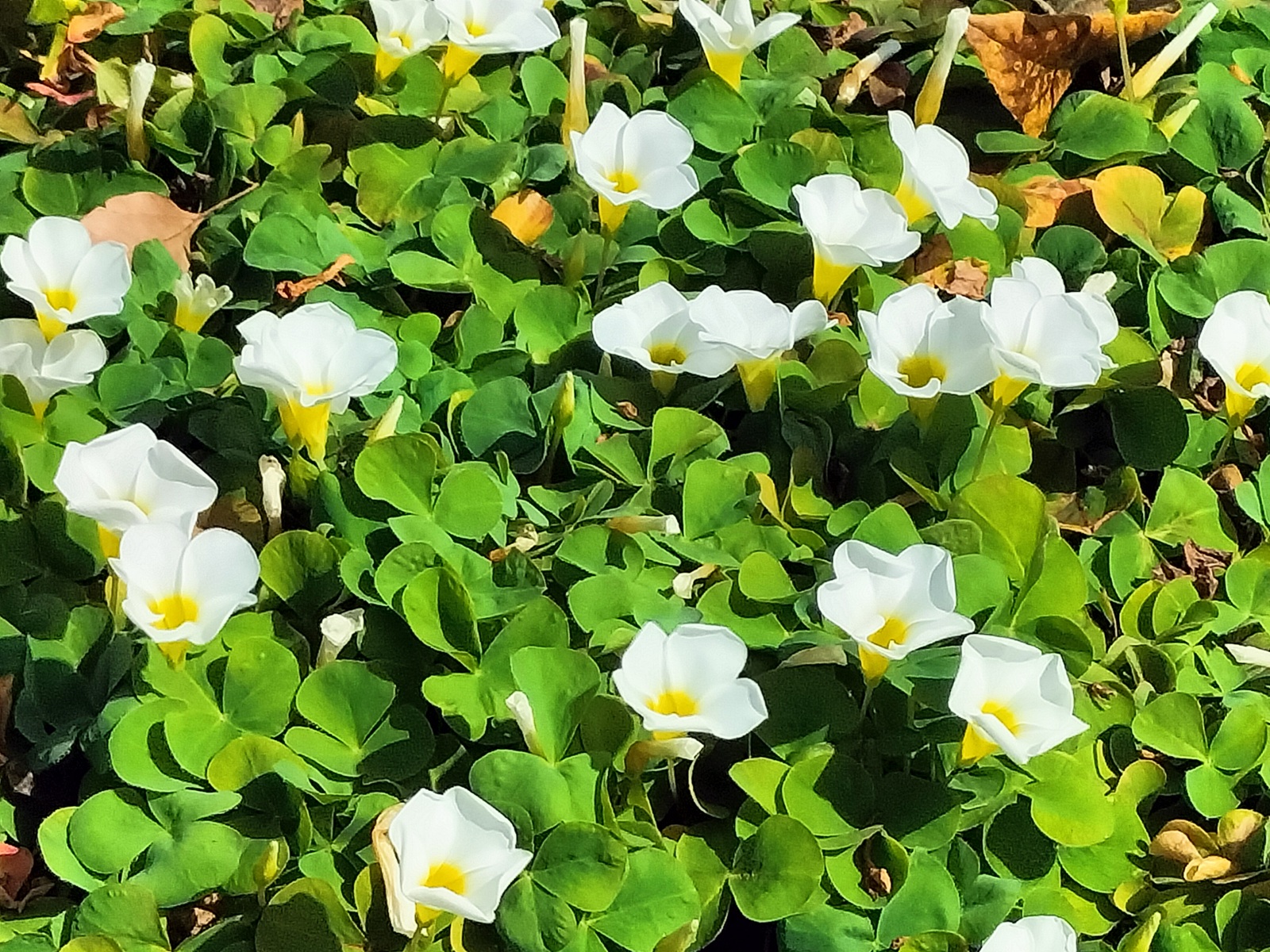 道路脇に群生しているフヨウカタバミ(3月7日撮影)