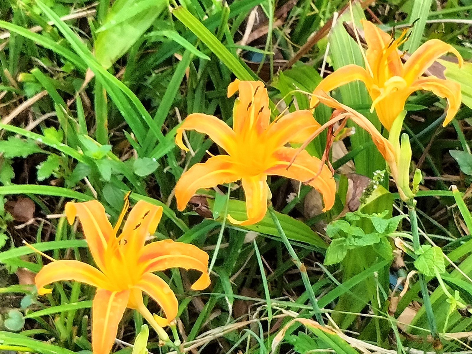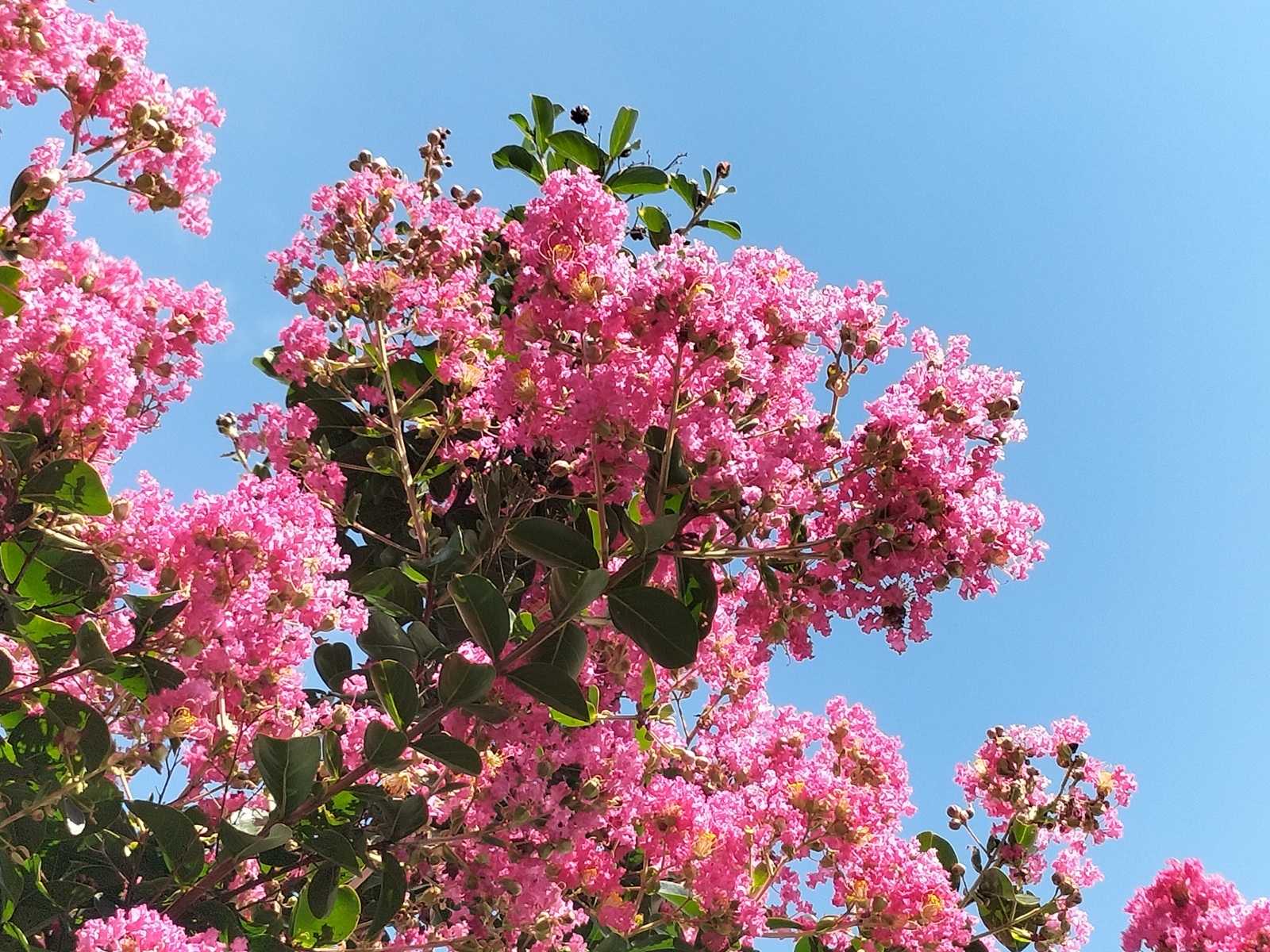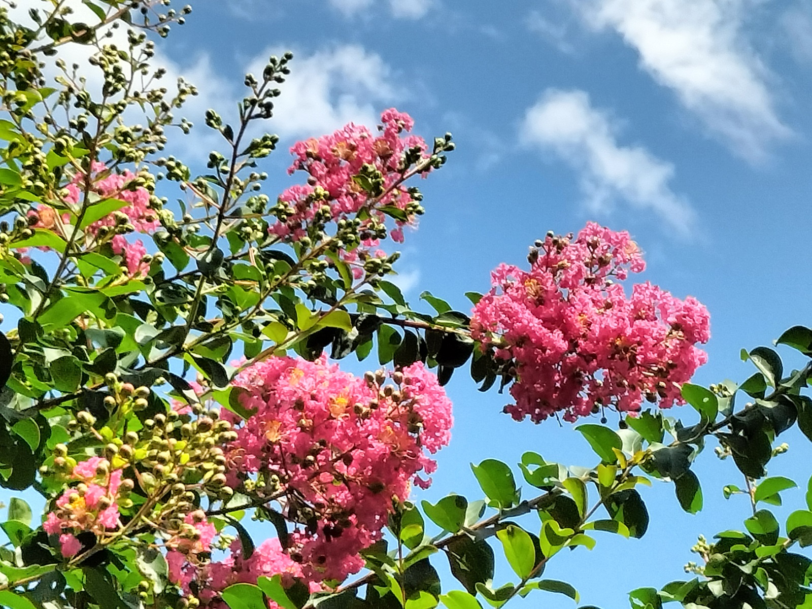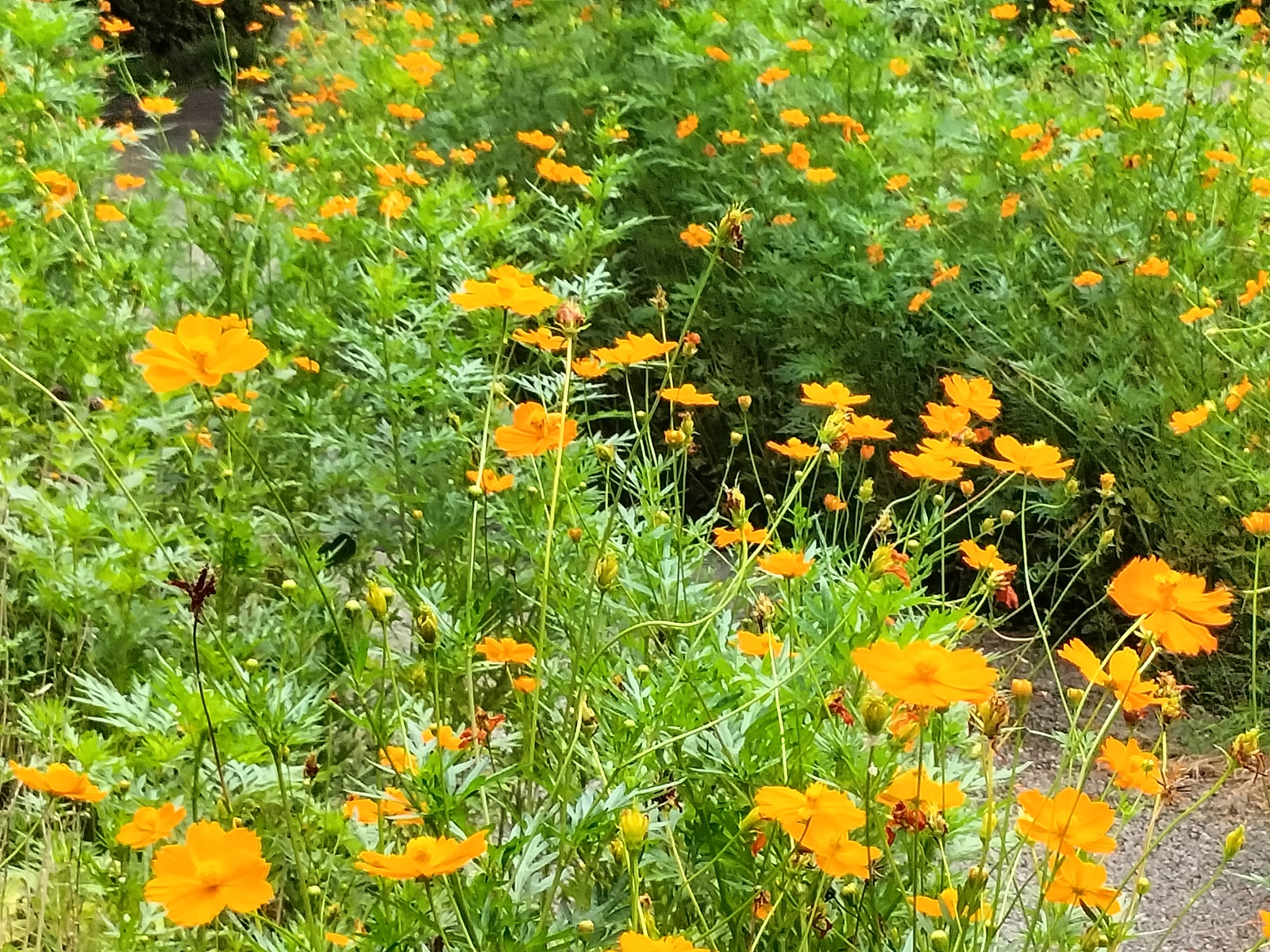 猛暑に耐えて道路脇に咲いている百日草(8月30日撮影)