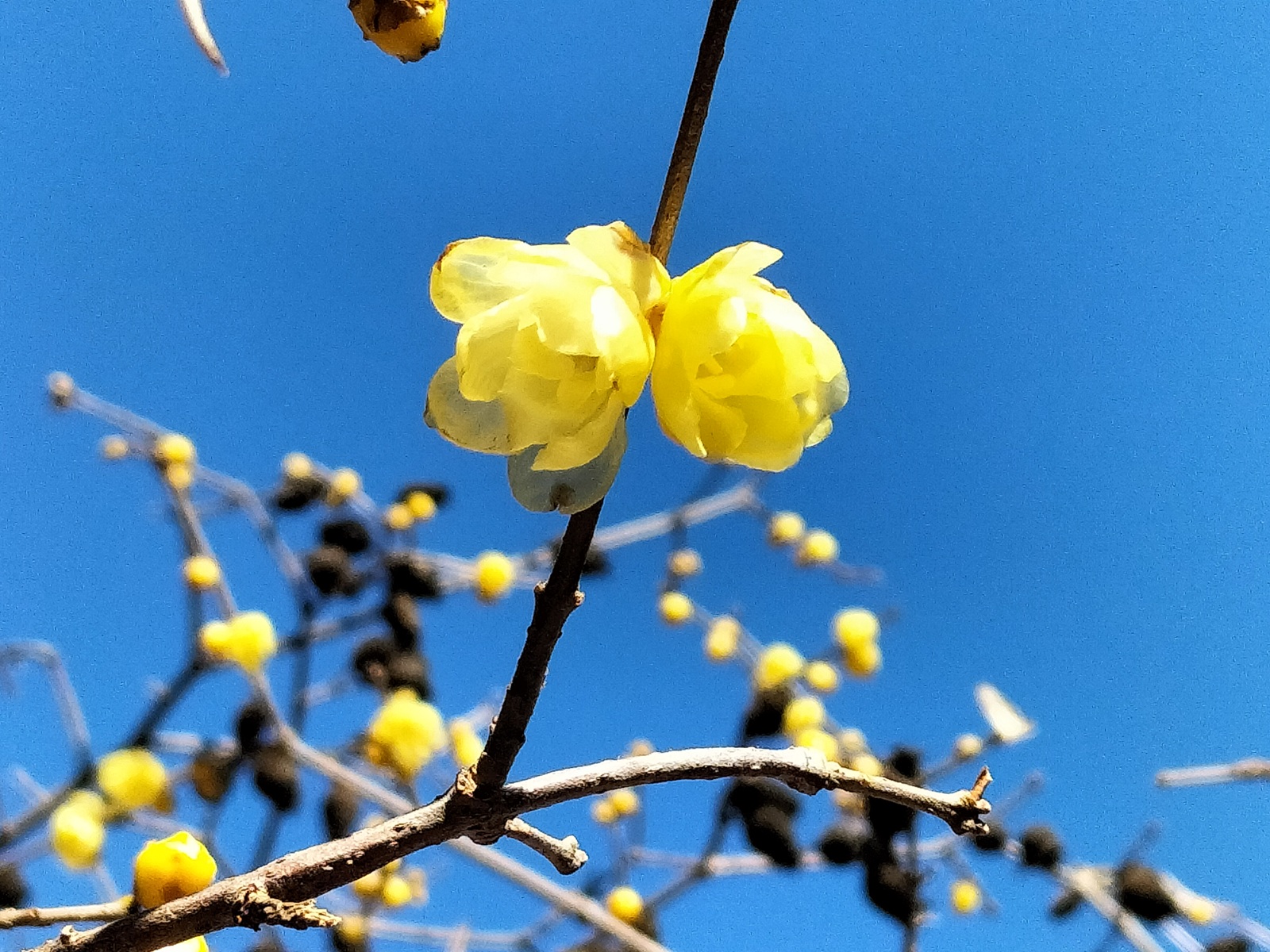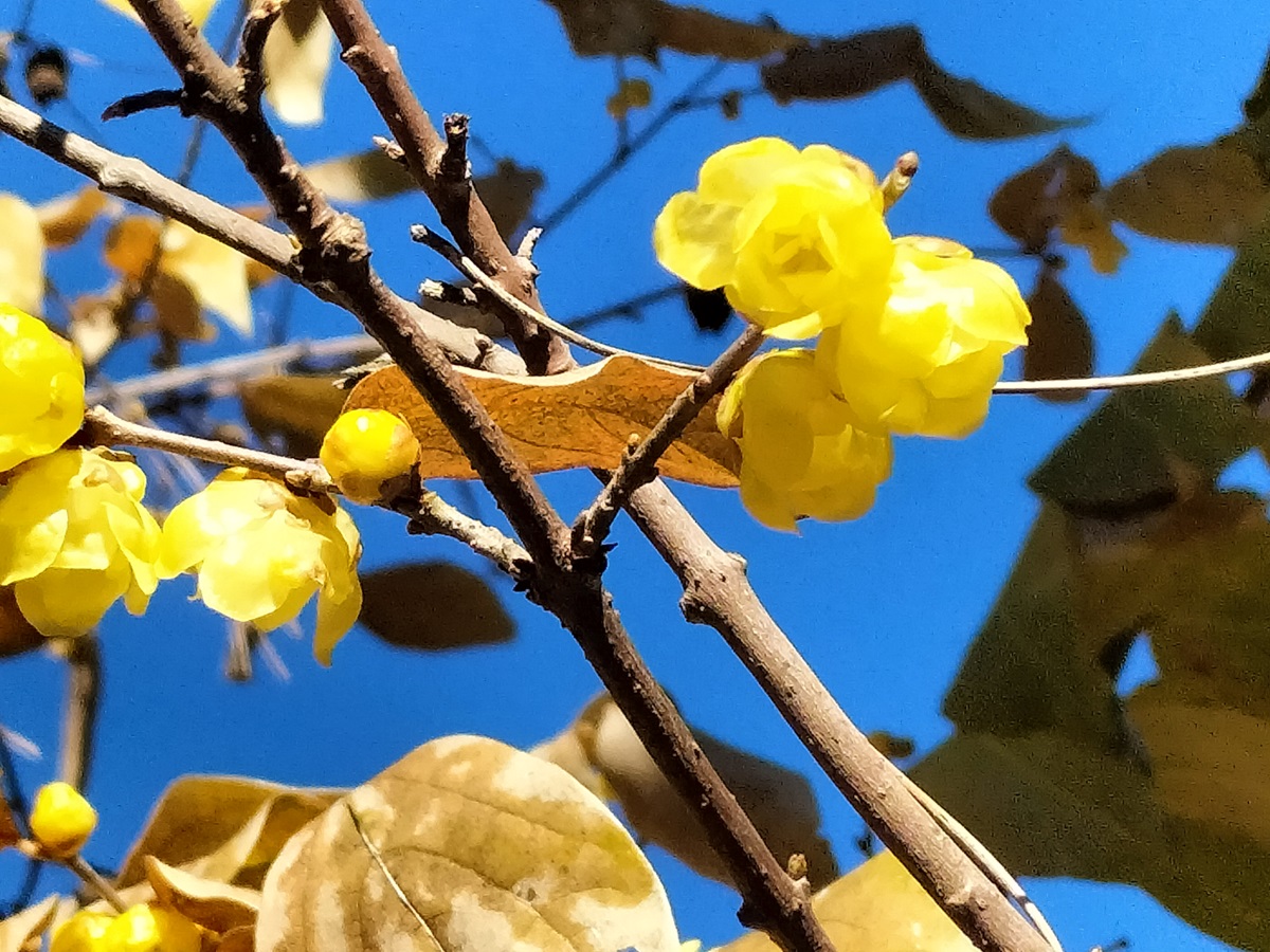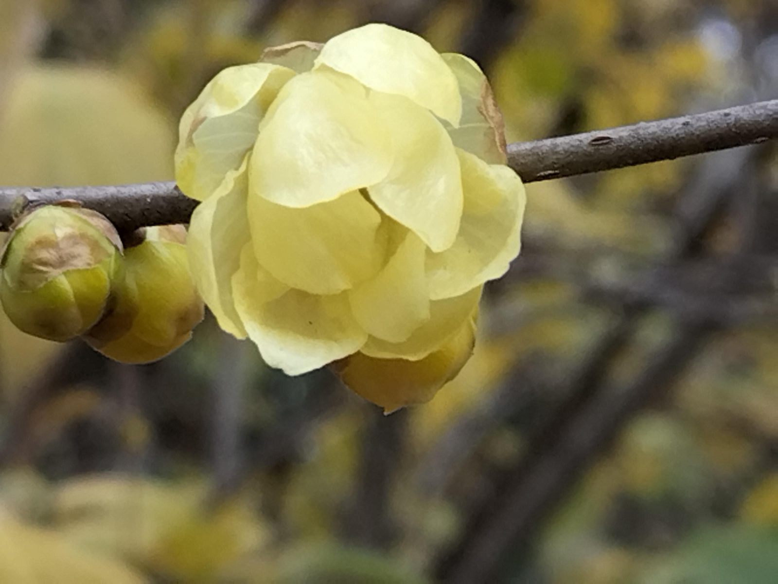 小金井公園で今冬最初の蝋梅の花を見つけました。