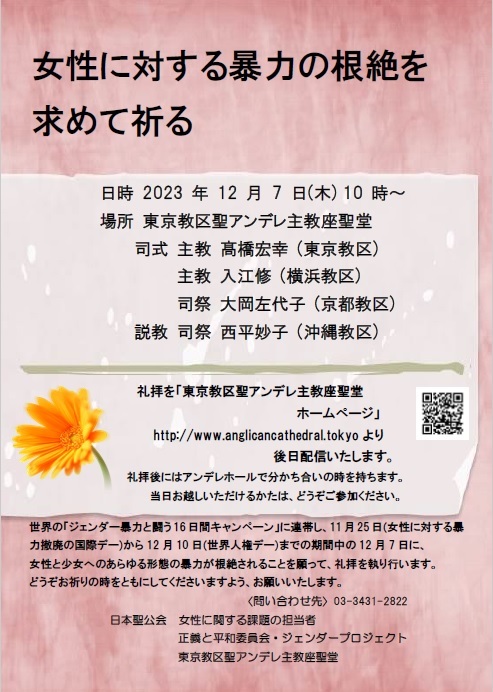 > 2023.12.7 主教座聖堂 女性に対する暴力の根絶を求めて祈る