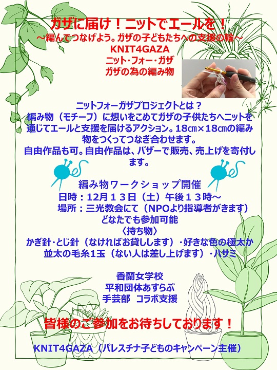 KNIT4GAZA・香蘭女学校・平和団体あすらぶ・手芸部 コラボ支援