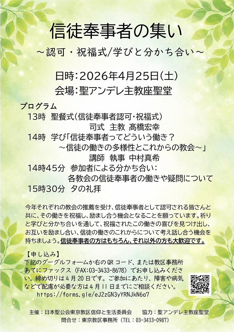 TOP >  教区活動 > 礼拝 > 2026.4.25 信徒奉事者の集い
