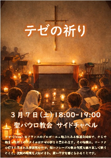NEW!! テゼの祈りのお知らせです。