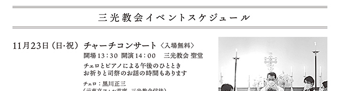 チャーチコンサート 11/23(日・祝)開場13:30 開演14:00